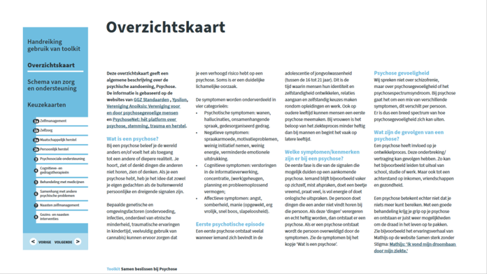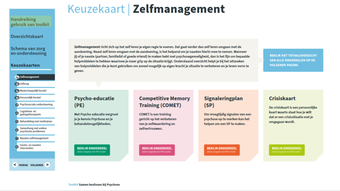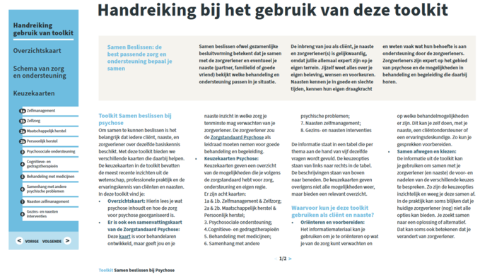 - De handreiking voor het gebruik van de Toolkit: een inhoudsopgave met introductie hoe de Toolkit gebruikt kan worden door cliƫnten en naasten of door professionals.