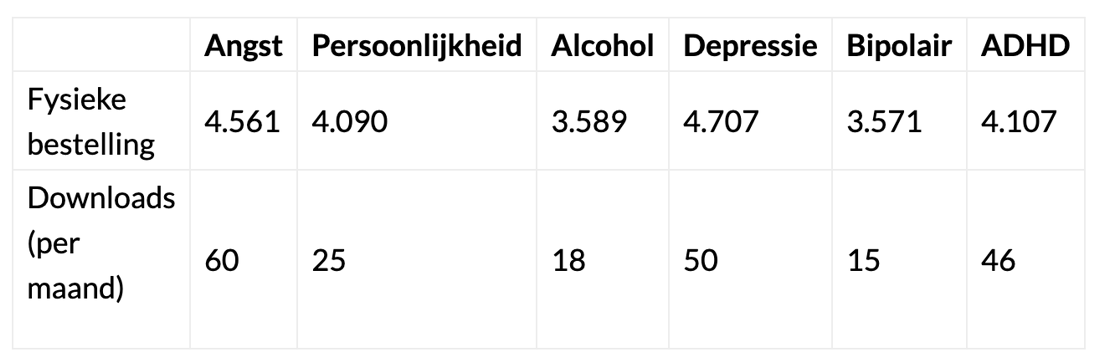 Tabel 2. Statistieken van aantal bestellingen en downloads periode januari 2022- januari 2023 (Akwa GGZ, 2023).