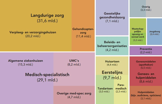 Figuur 3: Kosten naar zorgdomein in 2019 (in miljarden euro’s)