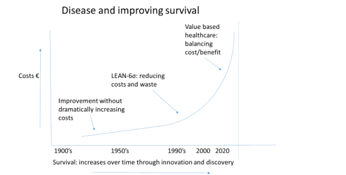 Deze eerste stappen waren duidelijk zinnig. Ze leverden veel gezondheidswinst op met relatief beperkte inspanning. In de periode hierna nam de geneeskunde een vlucht en werd breder deze beschikbaar. Er kwam oog voor kwaliteits- en kostenbeheersing. Efficiƫnt met hoge kwaliteit, met bijvoorbeeld lean-6 sigma als een prachtige tool om dit soort processen te optimaliseren. 2